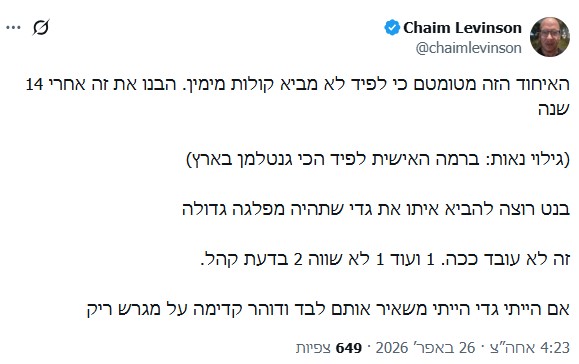 מה תרמה היהדות שלך בשמחת תורהרון ו 04/2026/26הגב לתגובה זו0 0אנחנו ישראלים נקודהסגור