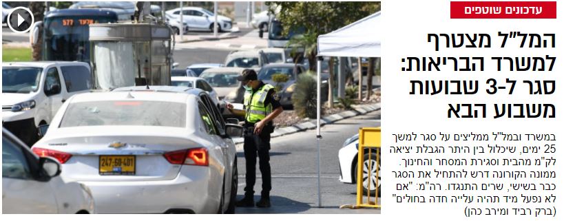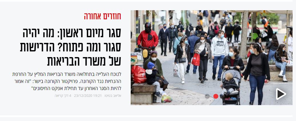 באופן טבעי, כל האתרים בישראל דיווחו על ההתפתחויות הללו ורובם המכריע הציב את הדיווח בידיעה הראשית של האתר, אך באופן הזוי ובלתי מובן, אתרים מסוימים בחרו דווקא בתמונה של אדם או ציבור חרדי. כאילו שלא למדנו כלום מההסתה שהייתה כלפי הציבור הזה בסגר הראשון, אז כל דיווח עיתונאי נפתח עם תמונות מבני ברק, מאה שערים או שכונה חרדית אחרת בישראל.