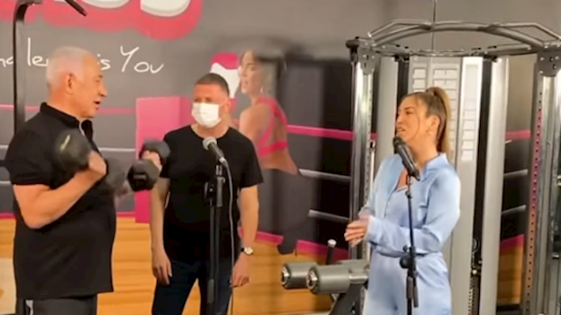 נתניהו הדגים את יכולתו בהרמת משקולות, כאשר נענה לאתגר גם להתחרות עם שר סנדה, מייסדת שר פיטנס. צפו: