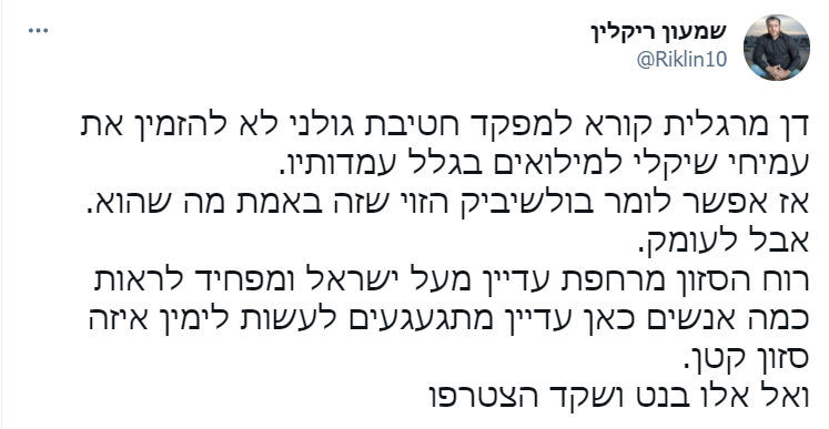 דן מרגלית קרא לא לזמן את שיקלי למילואים. ריקלין: "בולשיביק הזוי"