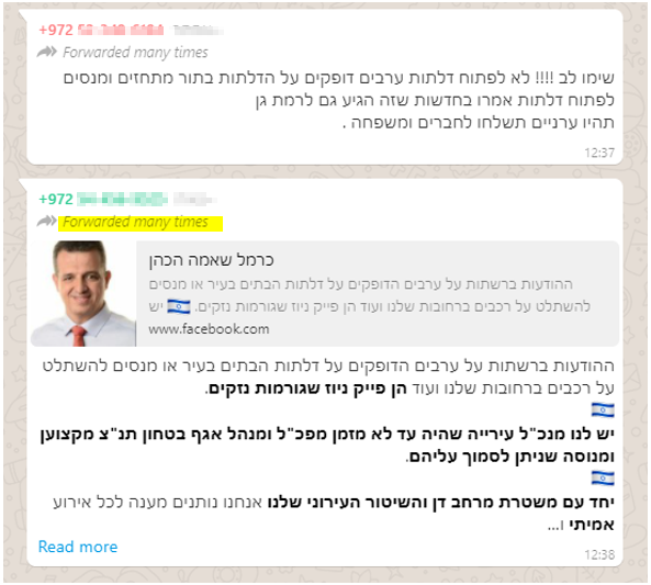 האם שמעתם על המקרה שמפורט בהודעה, אך ורק בהודעת וואטסאפ? סיכוי סביר שמדובר בשמועה או מידע לא אמיתי. בהודעת וואטספ תוכלו גם לראות את הכיתוב (סימנו בצהוב) Forwarded many times, אשר נועד בדיוק להתמודדות עם פייק ניוז והבנה שמדובר במידע שמופץ בהודעות שרשרת וחשוב לדעת את זה.