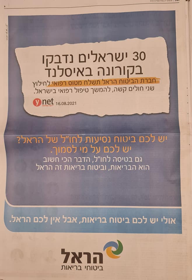 בעקבות מודעה שפרסמה חברת הביטוח הראל בעיתונים, מנכ"ל ישראייר אורי סירקיס יצא בביקורת הומוריסטית משעשעת בעמוד הפייסבוק שלו וטען כי החברה שכחה להזכיר כמה דברים חשובים במודעה המדוברת. כמובן שהיה מדובר בהלצה על הראל ששיתפה עם חברת התעופה פעולה.