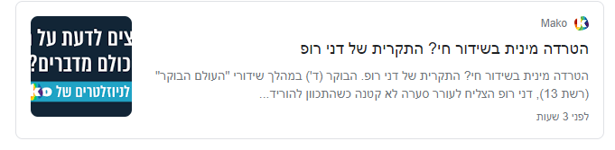 במסגרת סערת דני רופ שהתפרסמה הבוקר, המתחרים ב-N12 דאגו לפרסם את העניין בכל הפלטפורמות ברשותן כולל הכותרת החריפה ביותר שיוחסה לסיפור - ונמחקה