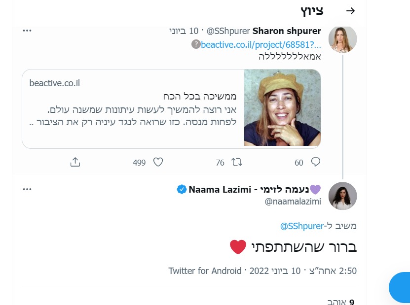 לזימי הגיבה לציוץ המדובר של שרון שפורר וכתבה לה: "ברור שהשתתפתי", בתוספת לב אדום. כעת נותר לראות האם הצעד יוצא הדופן של לזימי יעבור בצורה חלקה, כאשר ישנה אפשרות אמיתית לניגוד עניינים בעצם התמיכה של מושא הסיקור, לפחות בזירה הפוליטית, בפרויקט מימון ההמונים של המסקרת.