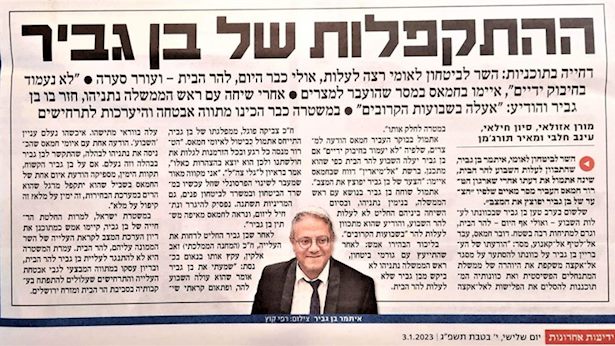 "ידיעות אחרונות" לקחו הימור גדול מדי כאשר פרסמו באותו בוקר שבו עלה השר בן גביר להר הבית על החלטתו של השר שלא לעלות להר הבית במהלך השבוע הנוכחי. הכותרת זעקה: "ההתקפלות של בן גביר" כאשר במהלך היום, לא זו בלבד שהשר עלה אלא גם ישראל חטפה גינויים בעולם כולל מארה"ב בעקבות הביקור.
