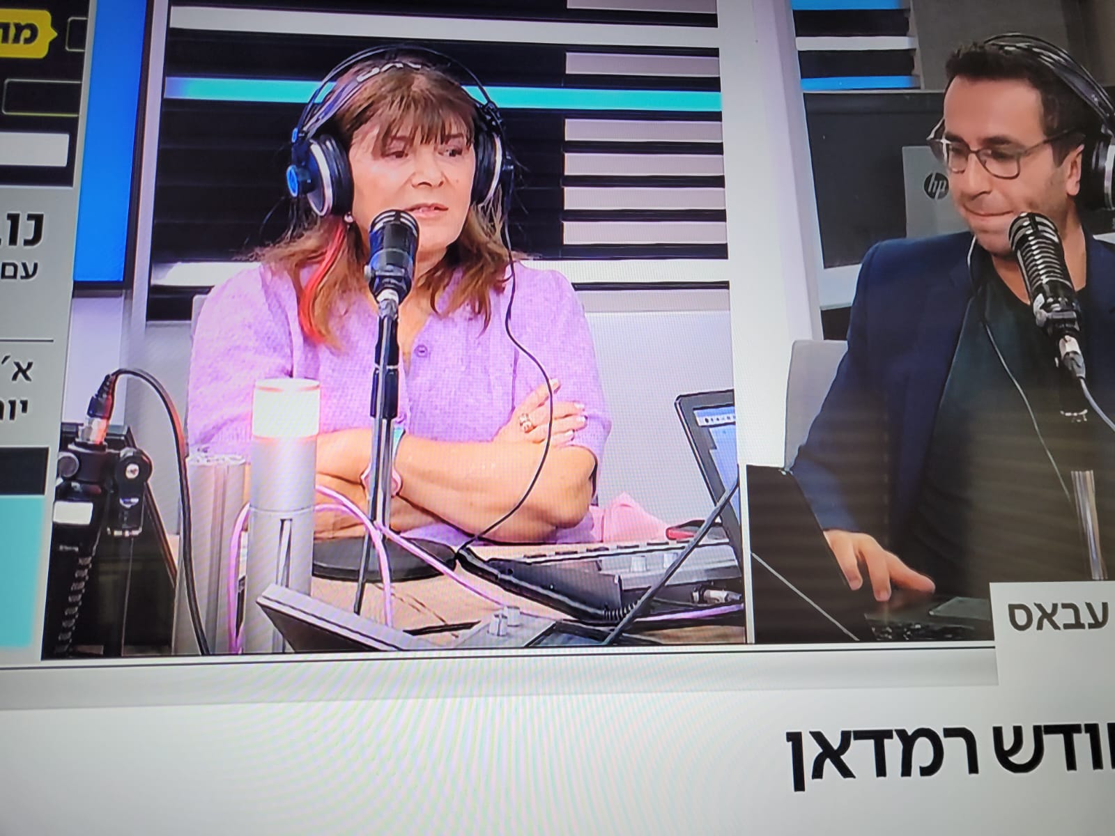 רינה מצליח שחזרה לקביעות ברדיו כאן רשת ב', הופיעה לתכנית עם עקיבא נוביק שבשערה פס אדום מפתיע במיוחד. התיעוד בפנים