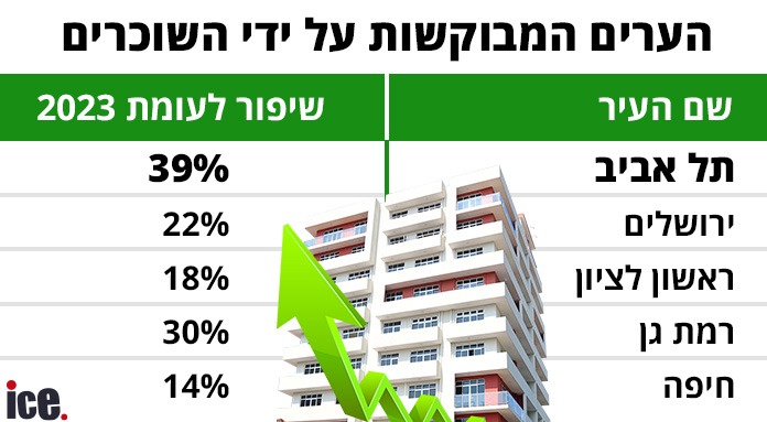 הנה רשימת הערים המלאה והשינוי בביקוש בשנה החולפת: