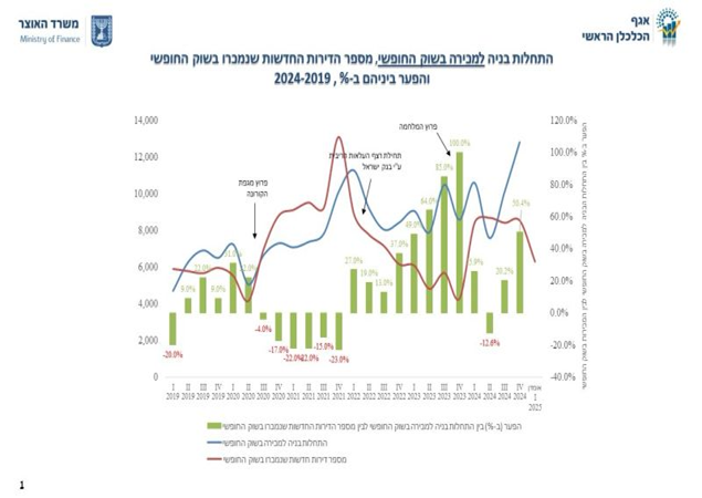 כפי שניתן לראות בגרף המצורף מתוך הסקירה האחרונה של הכלכלן הראשי, הפער בין מספר הדירות החדשות שנמכרות לבין התחלות הבנייה הוא הגבוה ביותר בשנים האחרונות למעט התקופה שלאחר פרוץ המלחמה. במילים אחרות, מלאי הדירות עולה, הלחץ על הקבלנים עולה יחד איתו ומחירי הדירות עדיין לא מגיבים מספיק כדי לייצר שיווי משקל חדש.
