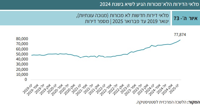 הנתון הזה יוצר אשליה שהכל בסדר, שהשוק יתקן את עצמו בגלל עודף מלאים, אבל האמת רחוקה מכך. לראשונה מזה זמן רב, אפשר היה לקבל, למי שרק רצה לשמוע, הרחבה מהלמ"ס לגבי הנתון הזה. בסוף מרץ 2025, מספר הדירות החדשות שנותרו למכירה עמד על כ-78,620 דירות, ומספר חודשי ההיצע (מספר החודשים שיעברו עד שכל הדירות שנותרו למכירה תימכרנה) היה 26.1 חודשים. בחודש הבא ייכנסו עוד מלאים לשוק ועוד דירות יימכרו ובהתאם לכך - משתנים נתוני ההיצע.