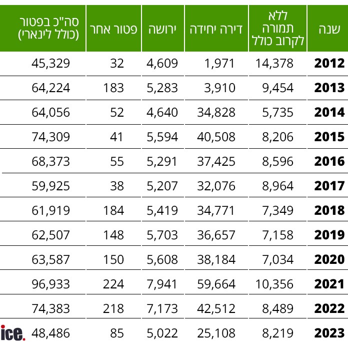 תחילה, סיכמנו בטבלה את מספר הפטורים שניתנו בגין מכירת דירות, לפי שנים: