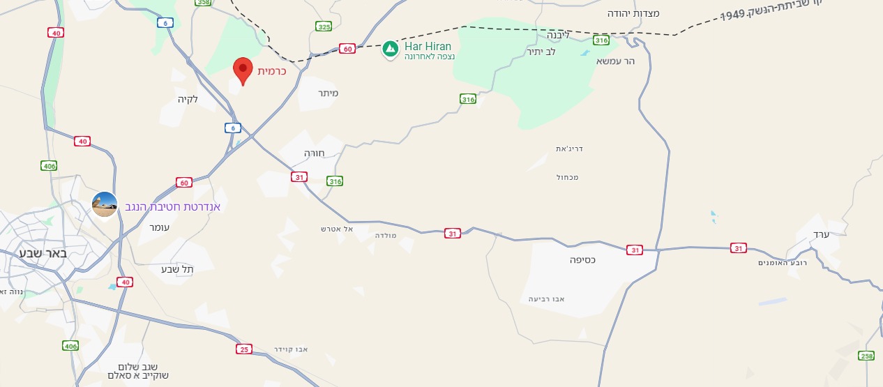 הפריפריה של הפריפריה. כרמית-מיתר-חירן (לחץ להגדלה, מתוך גוגל מאפס)