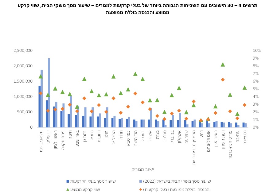 לסיום, כמה נתונים שמגלים כמה מרוויחים אלה שמחזיקים בקרקעות: ההכנסה הכוללת של משק בית כזה בשנת 2021 עמדה על כמעט 35 אלף שקל ברוטו למשק בית. סביר שהיום הממוצע עלה. 35 אלף שקל ברוטו זו הכנסה גבוהה ב-74% מהממוצע.