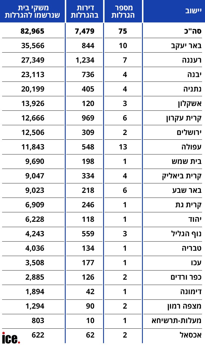 כפי שאפשר לראות בטבלה, באר יעקב ממשיכה להוביל עם מספר הנרשמים - כ-35 אלף נרשמו להגרלה בעיר, אבל במקרה שלה, יש 844 דירות בהגרלה. היחס בערים כמו כפר ורדים, למשל, הוא מצוין - 126 דירות בהגרלה, אבל רק 2,885 נרשמו. בכלל, עושה רושם שמלבד אשקלון, היחס בפריפריה הוא מצוין. הסיבה הנוספת למספרים הגבוהים בערי המרכז היא שזאת תהיה הפעם האחרונה שבה ערי המרכז ישתתפו בהגרלות. אפשר להוציא מהמשוואה את ירושלים, שנמצאת באשכול נמוך ובשכונות מסוימות היא עדיין עשויה להיכנס להגרלה וכפי שחשפנו כאן - גם כפר סבא מוחרגת ונשארת בפנים.