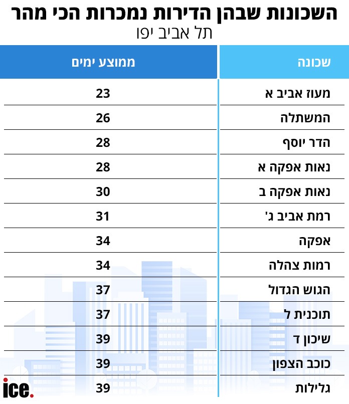 אפקה, רמת אביב או גלילות? השכונות שבהן נמכרות דירות תוך חודש