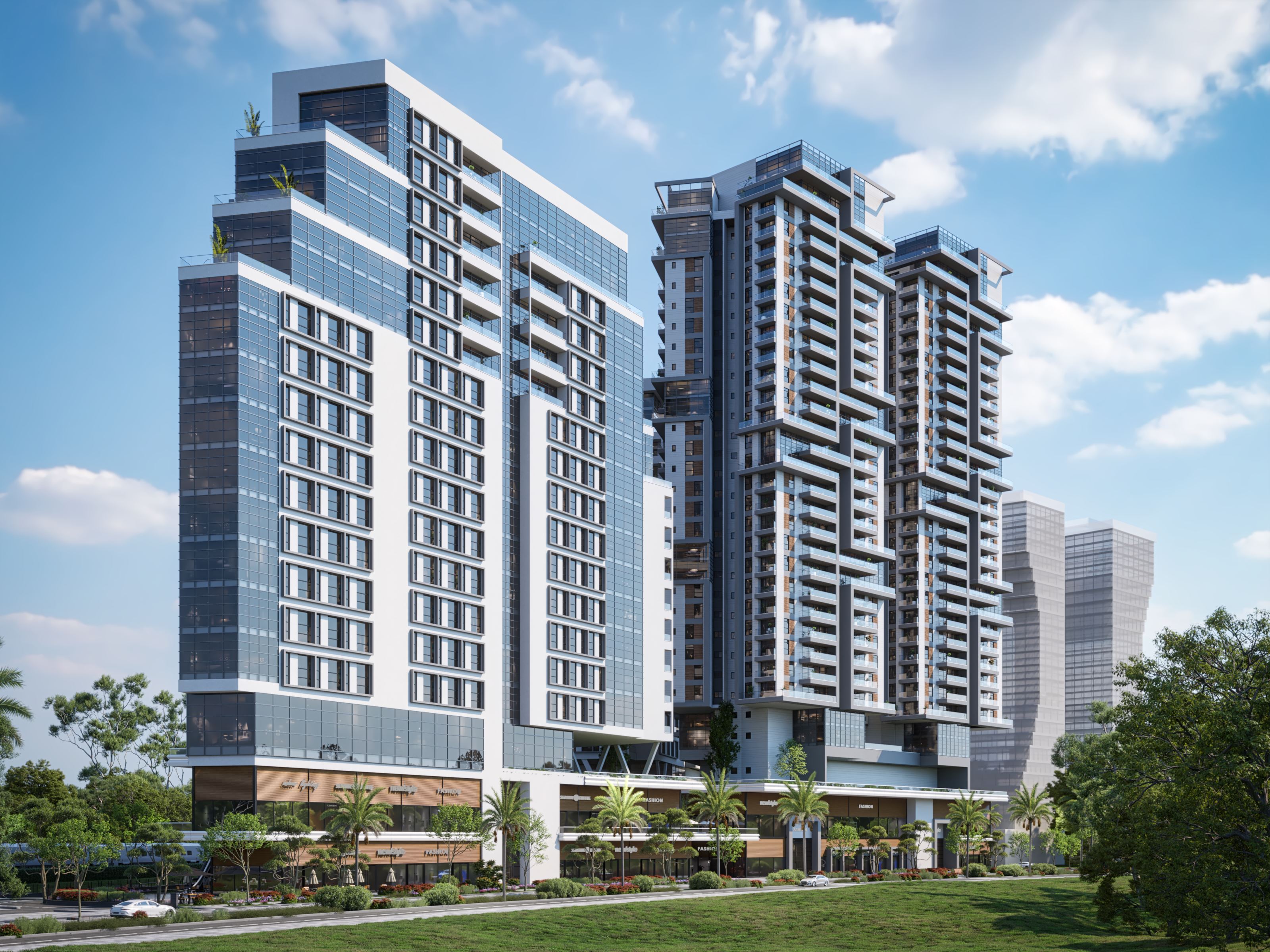 בנוסף, כוללת התכנית כ-8,000 מ"ר מסחר אשר ישולבו בבנייני המגורים ובבנייני המשרדי, בין היתר, כחזיתות פעילות לרחוב הראשי, לפנים המתחם ולחזית הפונה לרכבת, כ-41,000 מ"ר עבור משרדים ותעסוקה ב-2 מגדלי התעסוקה, כאשר כ1,000 מ"ר מתוכם יוקצו עבור מכללה. התוכנית נערכה על ידי על ידי משרד מסילתי אדריכלים.
