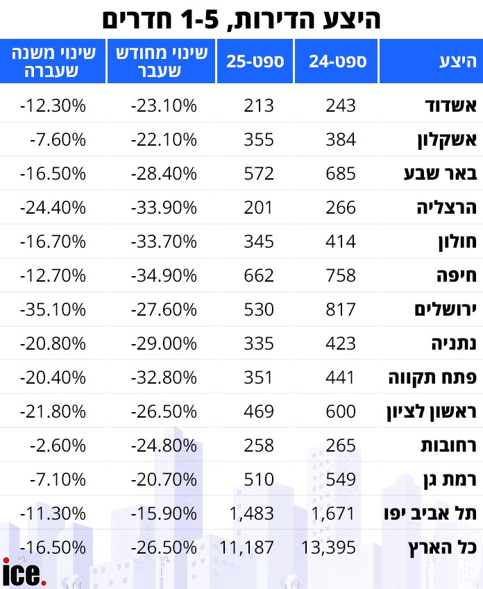 הנתונים מצביעים על ירידה חדה בחלק מהערים. בהרצליה, למשל, נרשמה ירידה חדשה בהיצע הדירות של כמעט 25% - זו ירידה גדולה שיכולה לבסס עליית מחירים בעתיד. העלייה החדה ביותר מגיעה מירושלים, שם היא עומדת על 35%. גם בנתניה, פתח תקוה וראשון לציון נרשמה ירידה של יותר מ-20%. ברחובות, רמת גן ואשקלון נרשמה ירידה חד ספרתית בלבד, וזה אולי מסביר את העליות בדמי השכירות באשקלון. הנתון מרמת גן, שם היצע הדיור השתנה בשיעור נמוך מפתיע - משום שבעיר הזו דמי השכירות דווקא יורדים.