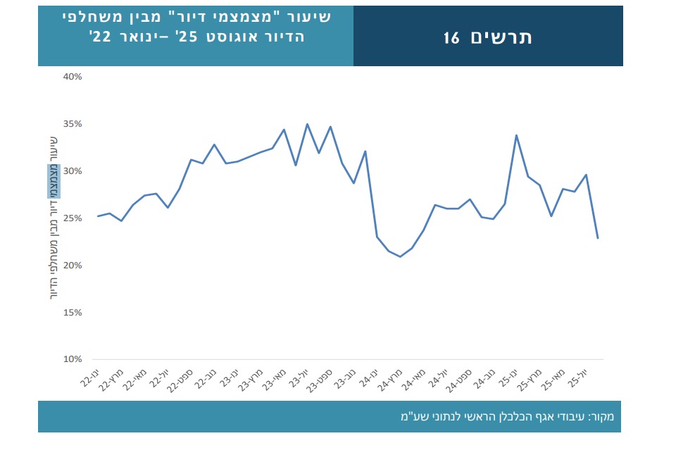 ירידה משמעותית מתחילת השנה. שיעור "מצמצמי הדיור" (נתונים: משרד האוצר)
