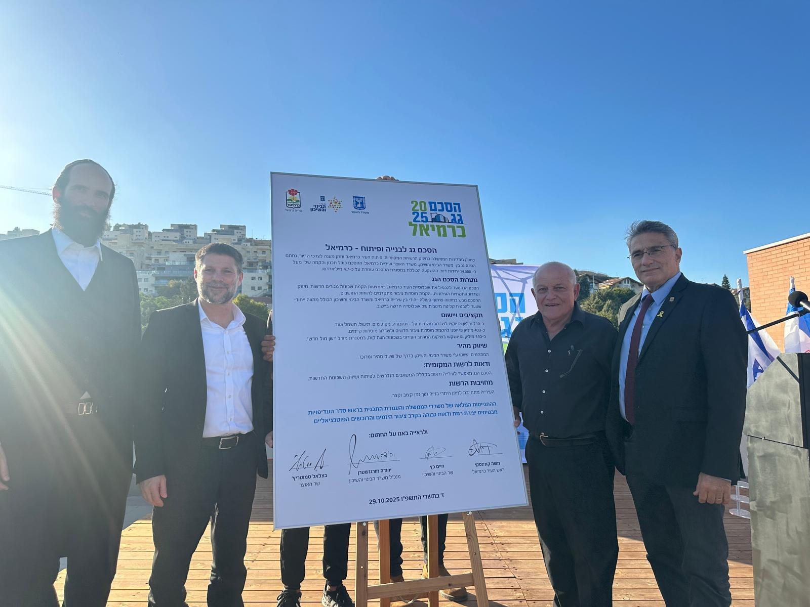 בהובלת משרד הבינוי והשיכון, משרד האוצר ועיריית כרמיאל נחתם היום הסכם גג היסטורי להרחבת העיר והכפלת האוכלוסייה בשווי של 4.7 מיליארד שקלים לפיתוח תשתיות, מוסדות ציבור ושכונות ותיקות