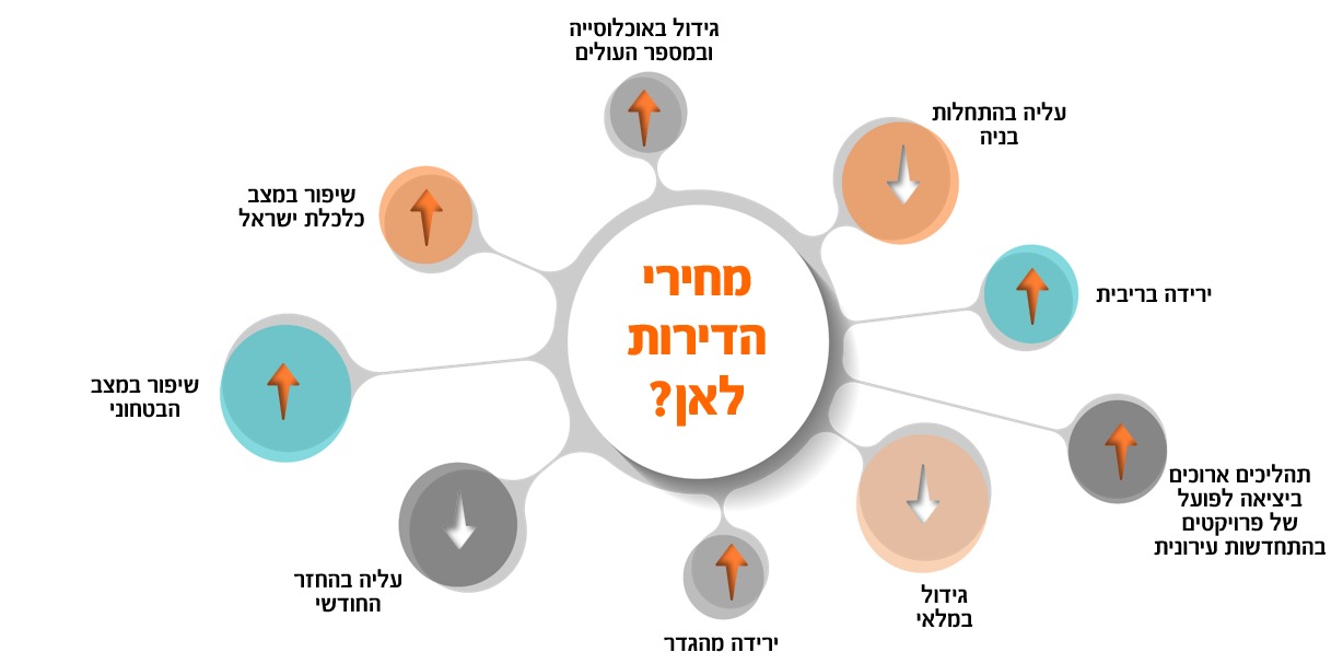 עד כאן צד ההיצע. בצד הביקוש, הסקר שאל כמה מהציבור בישראל חושב שהדבר הכי חשוב בבחירת נכס הוא המחיר. לפי תוצאות הסקר, מעל 20% ציינו שהמחיר קובע, כשהממ"ד רק במקום השני. עוד נמצא, כי הביקוש הגבוה ביותר הוא עבור דירות שבהן המחירים נעים בין 8,000 שקל למ"ר לבין 22 אלף שקל למ"ר.