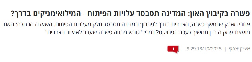 שנה עברה מאז נסגר המכרז של הרשות ל-171 מגרשים על קרקעות הקיבוץ, בו זכו בין היתר 80 חיילי מילואים. המתיחות הובילה לעיכוב ורק בימים האחרונים נרשמה פריצת דרך להסכם פשרה בין הגופים, מה שמבטיח את מחויבות המדינה כלפי משרתי מערך המילואים.