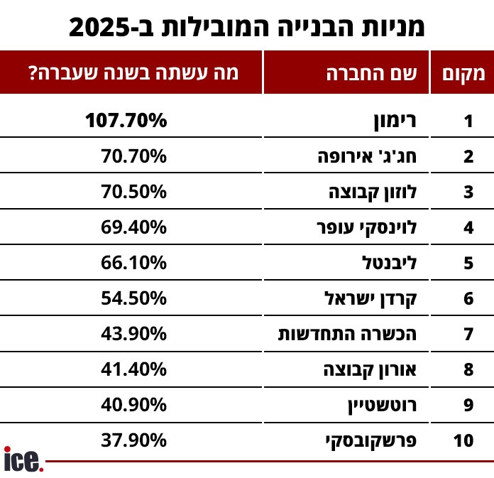 וזאת רשימת מניות הבנייה המצליחות של 2025:
