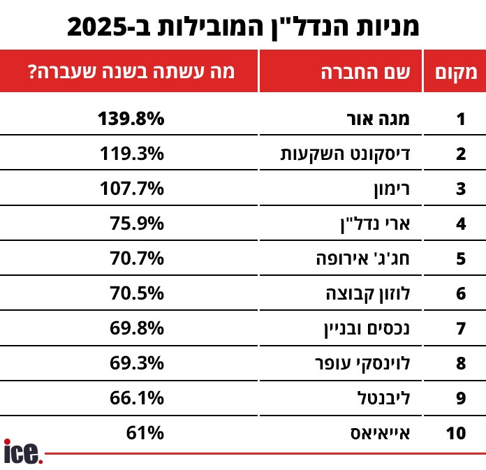 הנה רשימת 10 מניות הנדל"ן המצליחות של 2025: