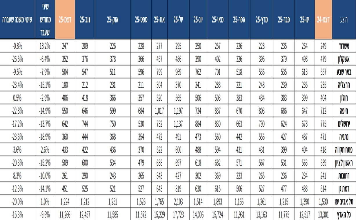 כשמסתכלים על הנתונים הכללים של הדירות להשכרה, אפשר לראות כי ישנה ירידה של יותר מ-15%, למרות שהביקוש לדירות להשכרה רק הולך וגדל. בחברה מצאו כי ישנה ירידה של כמעט 10% בהיצע הדירות לעומת החודש שעבר. כמה דירות להשכרה "הלכו לאיבוד" לעומת השנה שעברה? מעל 2,000 דירות, שאמורות להוות גג ליותר מ-7,000 איש במדינת ישראל. כשמסתכלים על הדירות הקטנות המחסור אף גדול יותר - ירידה של כמעט 18%. בהרצליה ובאשקלון זה בולט במיוחד, עם ירידה של 33% בהיצע הדירות להשכרה, מה שמאפשר להם לעלות מחיר.