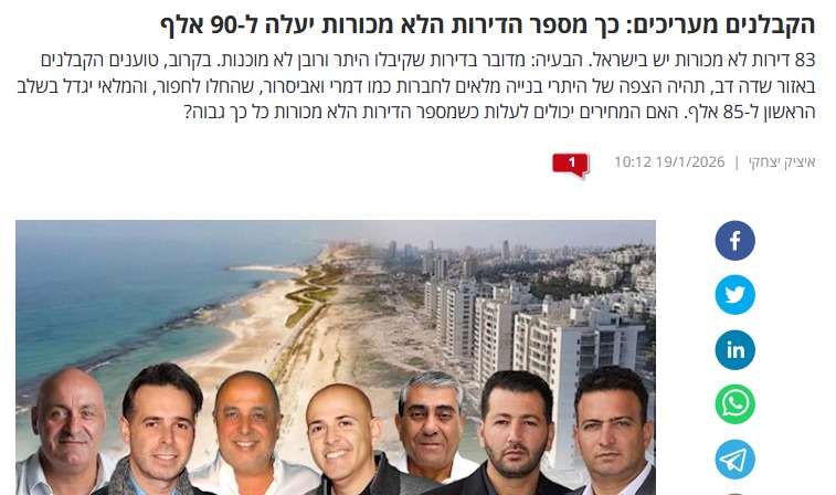 "מספר הדירות הלא מכורות יזנק", ניבאו הקבלנים. הכותרת באתר