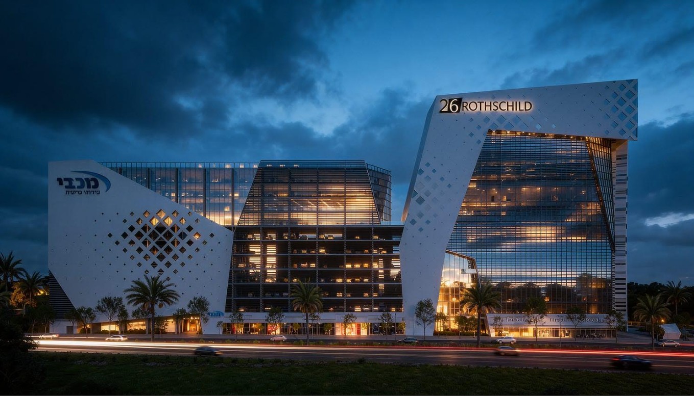 "רוטשילד 26" שהושקעו בהקמתו כרבע מיליארד שקל וכולל כ-40 אלף מ"ר שטחי משרדים, כ-2,000 מ"ר שטחי מסחר וחניון עילי עם מאות מקומות חניה, יאוכלס רשמית במרץ 2026.
