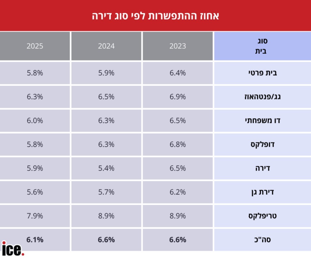ומה עוד אפשר ללמוד לגבי דירות מיוחדות: כשמדובר בצמודי קרקע אחוז ההתפשרות נמוך יותר משנה לשנה, בין אם מדובר בבית חד משפחתי או בבית דו משפחתי. המוכרים מוכנים להוריד 6%-5.8% במחיר. במקרה של דירת גן אחוז ההנחה יהיה נמוך יותר - 5.6% בלבד. בעלי דירות פנטהאוז מתפשרים קצת יותר - סביב 6.3% מהמחיר המקורי. בדירות רגילות אחוז ההנחה עומד על 5.9% - פחות מהממוצע שעומד על 6.1%.