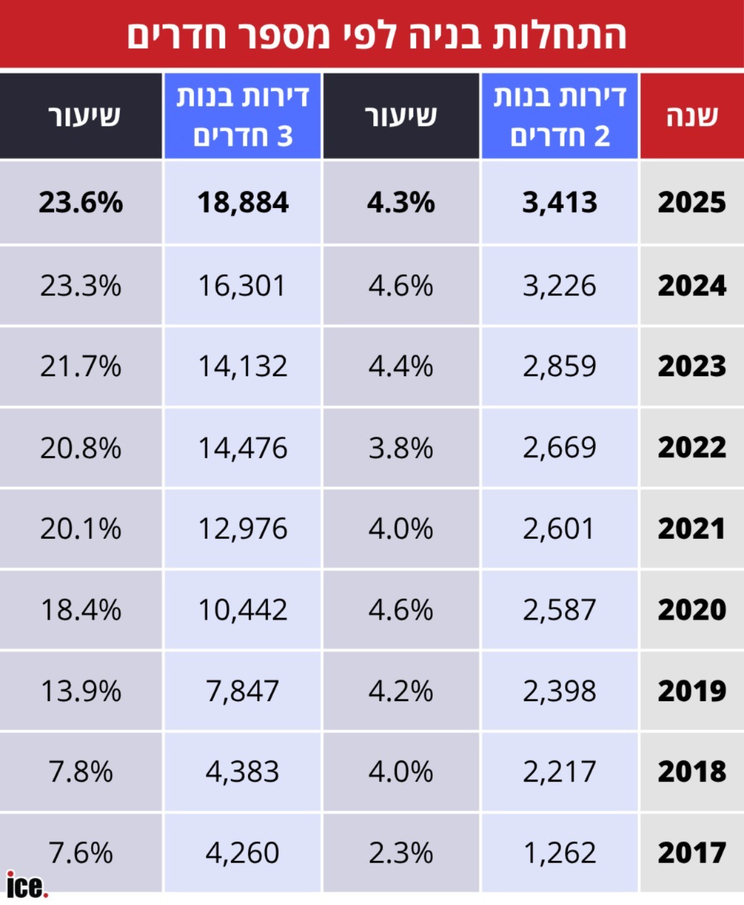 נתוני הלמ"ס לשנת 2025 מוכיחים כי בניית דירות קטנות של 3 חדרים נמצאת במגמת עלייה. במקביל, הקבלנים מקטינים את גודל הדירות. האם יש צורך בדירות כל כך קטנות ואיך זה שהמספר הוכפל בתוך 5 שנים?