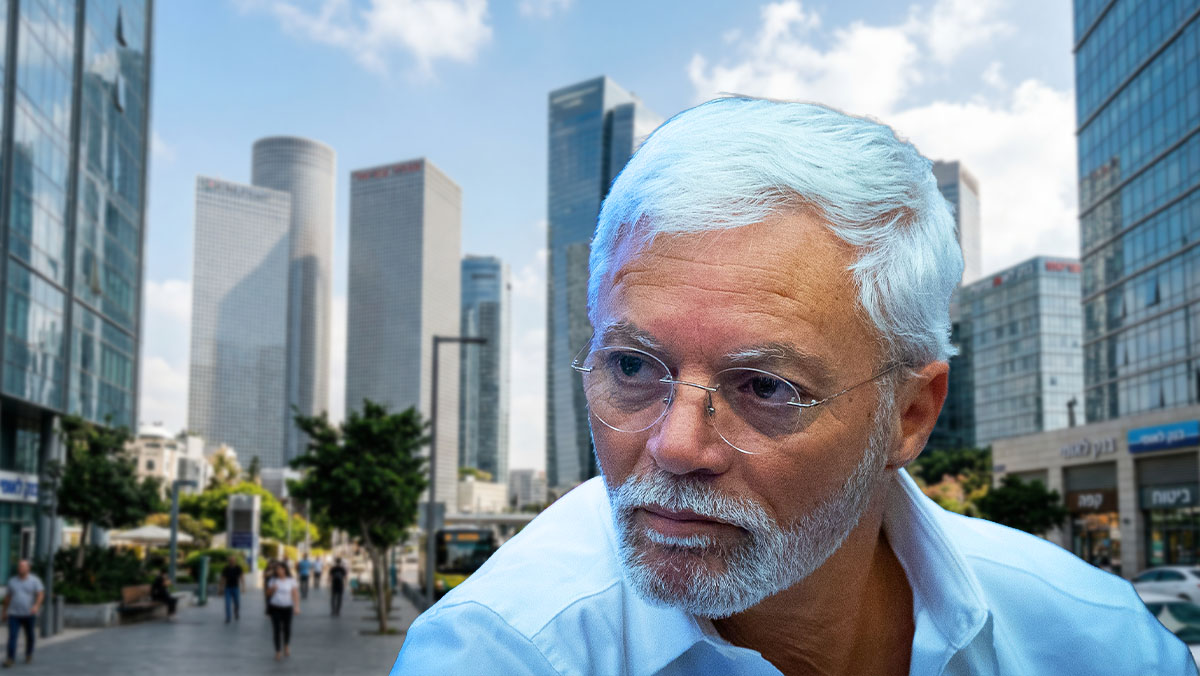 איתן יוחננוף לצד מגדלי מגורים (Yonatan Sindel/Flash90)