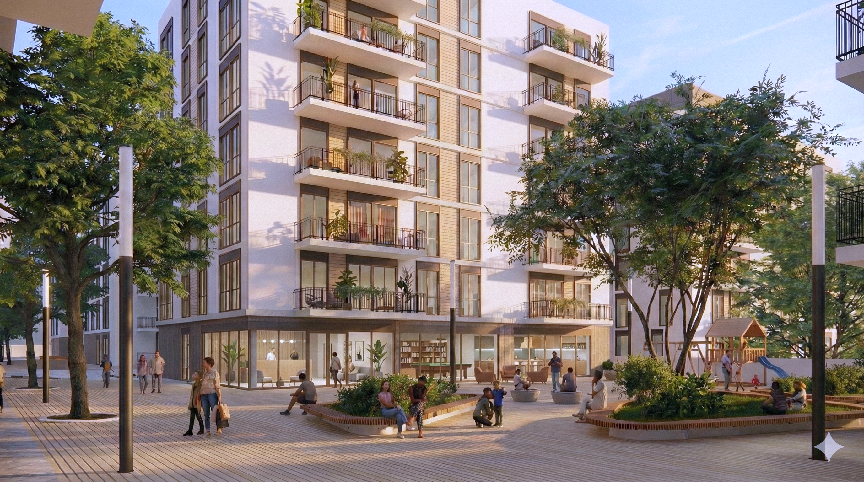 לאורך רחוב יצחק שמיר תוקם חזית עירונית פעילה שתכלול כ-2,200 מ"ר של שטחי מסחר ותעסוקה, לצד שילוב מבני ציבור, במטרה ליצור סביבה עירונית חיה, נגישה ומגוונת. התוכנית מדגישה פיתוח מרחב ציבורי איכותי עם רשת שבילים להולכי רגל, חיזוק הקישוריות ושימור עצי צל בוגרים כחלק בלתי נפרד מהתכנון. התוכנית נערכה על ידי משרד גושן אדריכלים.