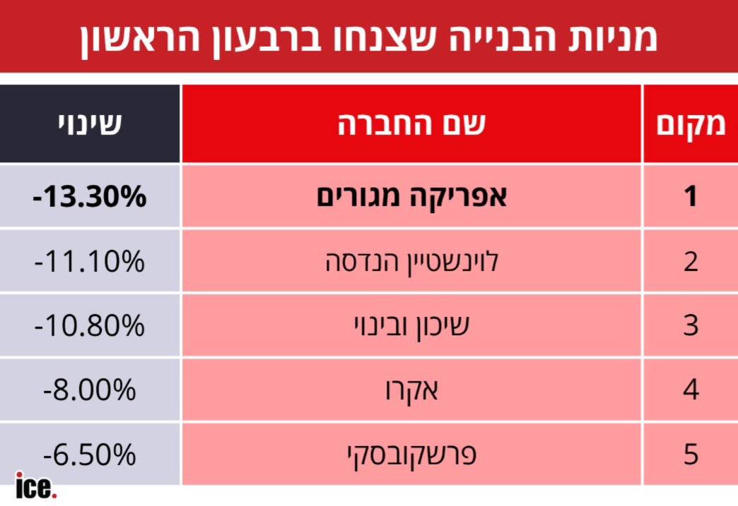 לקחנו את 15 החברות החזקות, כלומר בעלות שווי השוק הגבוה במדד הבנייה, ובדקנו מה קרה למניות. 5 מניות בלטו במיוחד בירידה שלהן, כולל חברות גדולות ומוכרות. המניות של עמוס לוזון (לוזון רונסון, הקבוצה עצמה זינקה בכמעט 13%) מזנקות בקרוב ל-50%, וממשיכות לזנק גם מתחילת החודש הנוכחי. אפשר להניח שהירידה של רוב מניות הנדל"ן לא קשורה רק למלחמה, אלא גם לחלק מהדוחות ולמכירות במהלך שנת 2025.