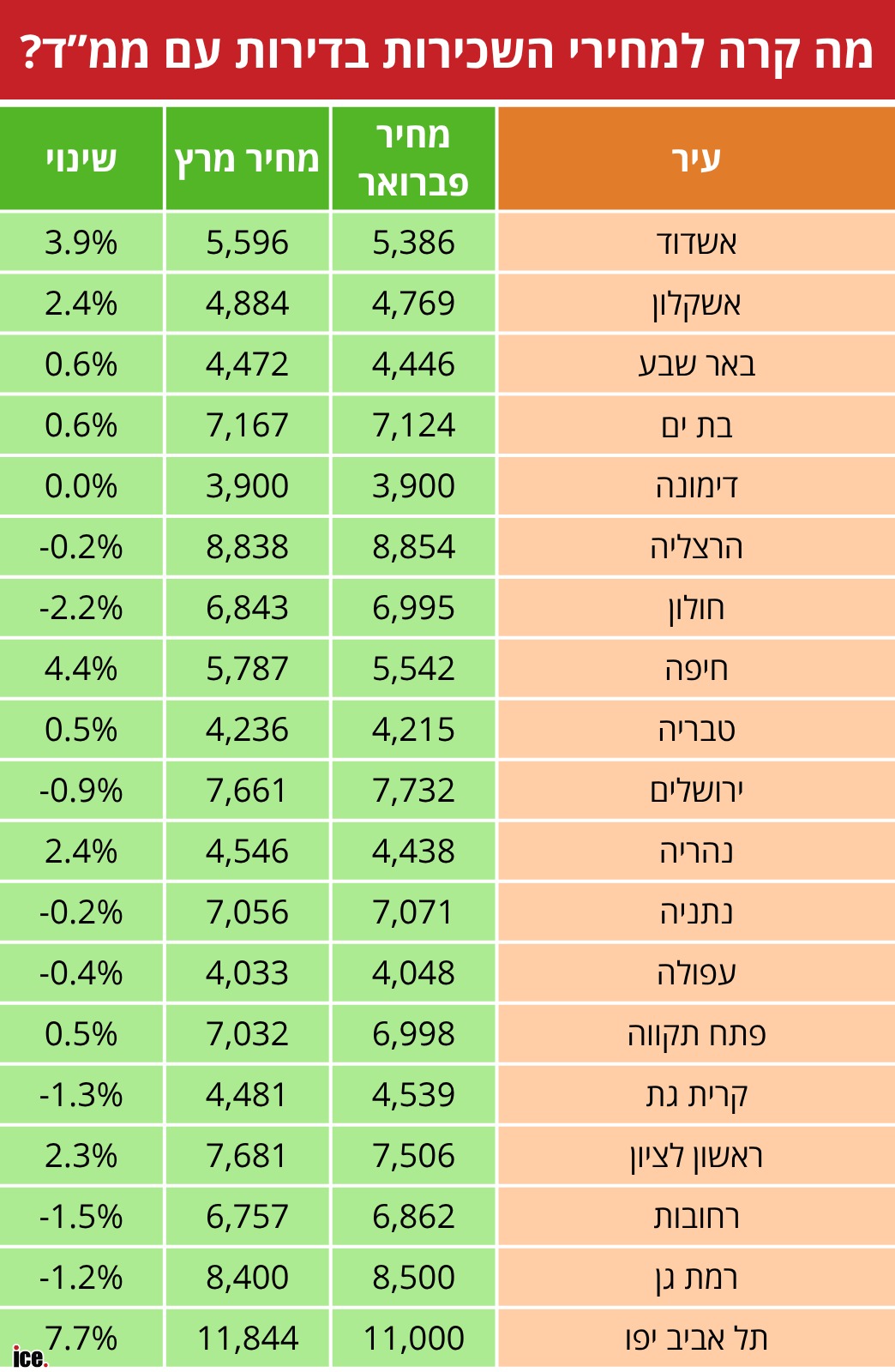 בדיקה מגלה כי מחירי השכירות בדירות עם ממ"ד זינקו במרץ לעומת חודש פברואר. כנסו וגלו מה קרה בעיר שלכם: היכן במרכז תשלמו יותר מ-800 שקל בממוצע והיכן המחירים דווקא ירדו?