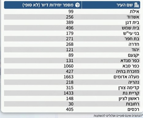 קרוב ל-8,000 דירות. הטבלה הכמעט סופית של משרד הבינוי והשיכון
