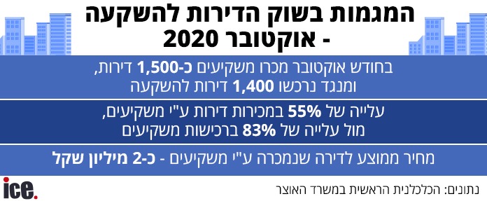 בחודש אוקטובר חלה עלייה חדה של 55% במכירות דירות ע"י משקיעים, לצד עלייה של 83% ברכישות של משקיעים. הכלכלנית הראשית: אין להסיק מכך שהמשקיעים "החדשים" מוכנים לשלם יותר