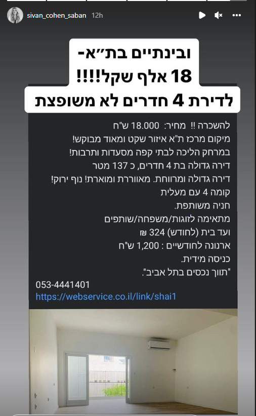 העובדה שמחירי הדיור ממשיכים לעלות, לא מפתיעה אף אחד, אך בכל זאת כל פעם מחדש אנו נדהמים לראות את השיאים החדשים שמגיעים אליהם בשוק. העיתונאית סיון כהן-סבן, מגישת התוכנית 'הכל כלול' שיתפה באינסטגרם שלה מודעת שכירות שנתקלה בה, והשאירה אותה המומה.