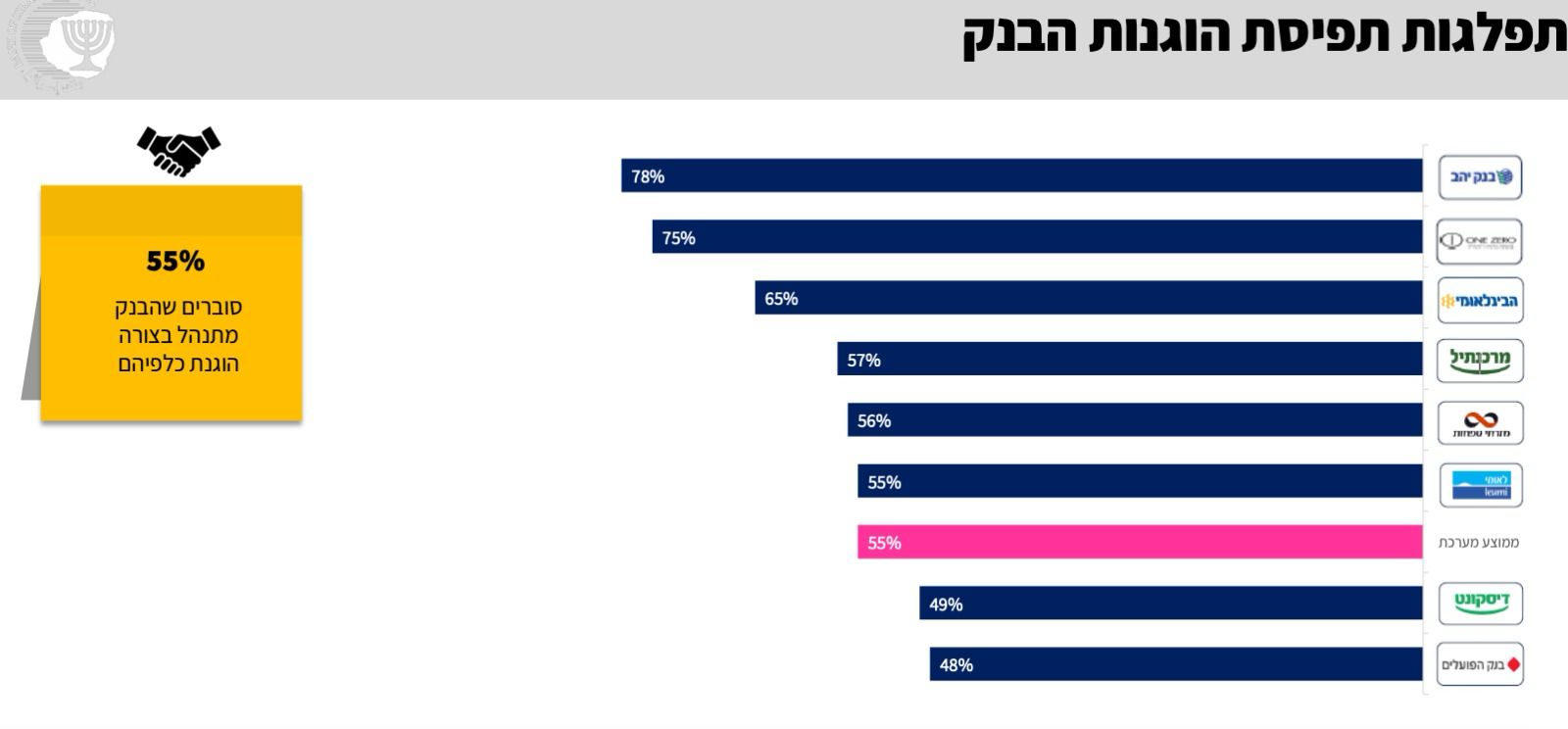 בעוד שבנק וואן זירו הגיע למקום ראשון בשביעות הרצון בפער משמעותי מהממוצע במערכת, בנק יהב הגיע בסקר ההוגנות למקום הראשון מעל וואן זירו