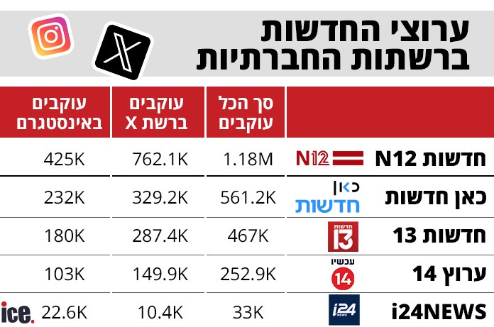 בעידן של ימינו זה כבר ברור לכולם - ההצלחה של כלי תקשורת, ערוצי טלוויזיה ותוכניות לא נמדדת רק במספר הצופים והרייטינג היומי, אלא גם על ידי הרשתות החברתיות. צרכני המדיה הישראלים מעדיפים להתעדכן דרך האינסטגרם ורשת X בחדשות ולכן יש חשיבות רבה למספר העוקבים אחרי החשבונות הרשמיים של כל ערוץ וכלי מדיה.
