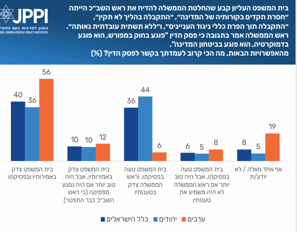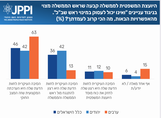 מדד החברה הישראלית של JPPI (המכון למדיניות העם היהודי) בדק עמדות הציבור ביחס למינוי והמאבק המשפטי סביבו. הממצאים משקפים את השסע הפוליטי והחברתי בישראל, כמו גם את חוסר האמון ההולך וגובר בין רשויות המדינה.