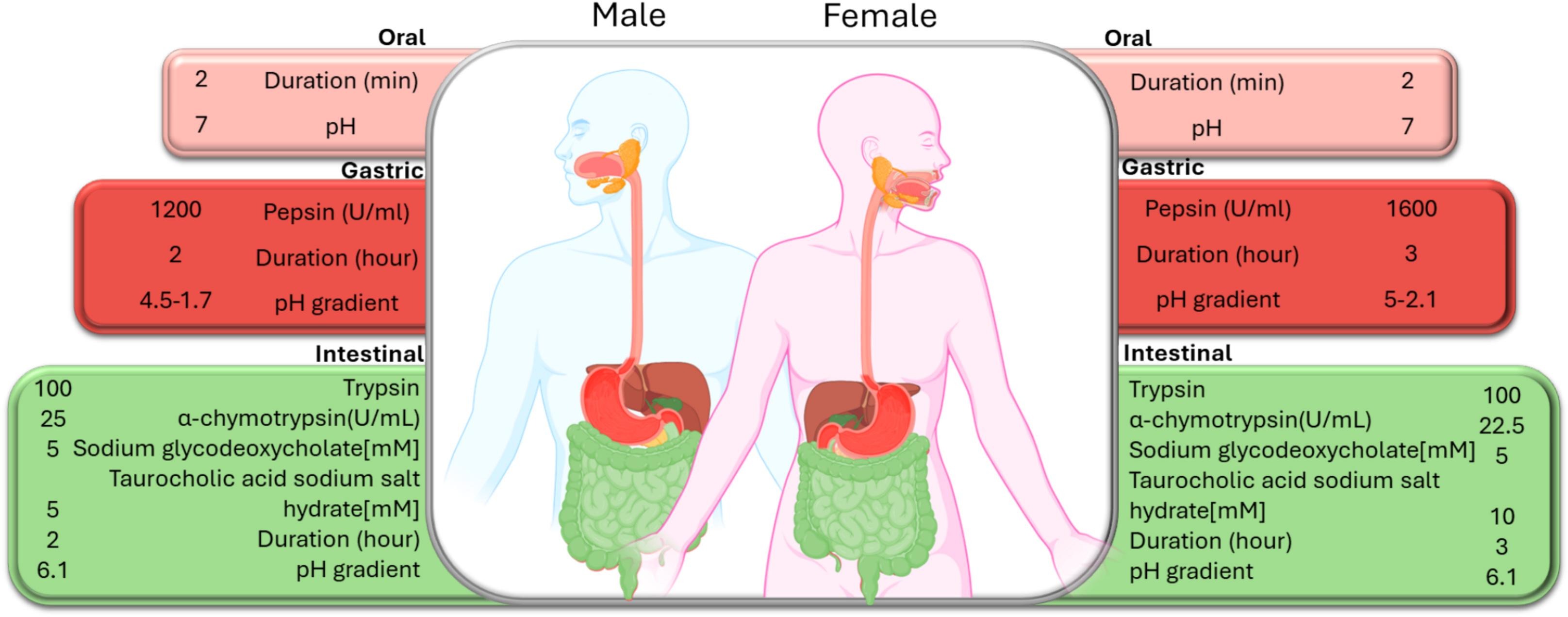 לצורך המחקר פותח מודל עיכול ייחודי המדמה את מערכות העיכול של שני המינים. בניסויים שבוצעו במעבדה נמצא כי מערכת העיכול הגברית מפרקת חלב מהחי ביעילות גבוהה יותר, בעוד שבמערכת הנשית נרשמה יעילות גבוהה יותר בפירוק של תחליף חלב צמחי המבוסס על שיבולת שועל.