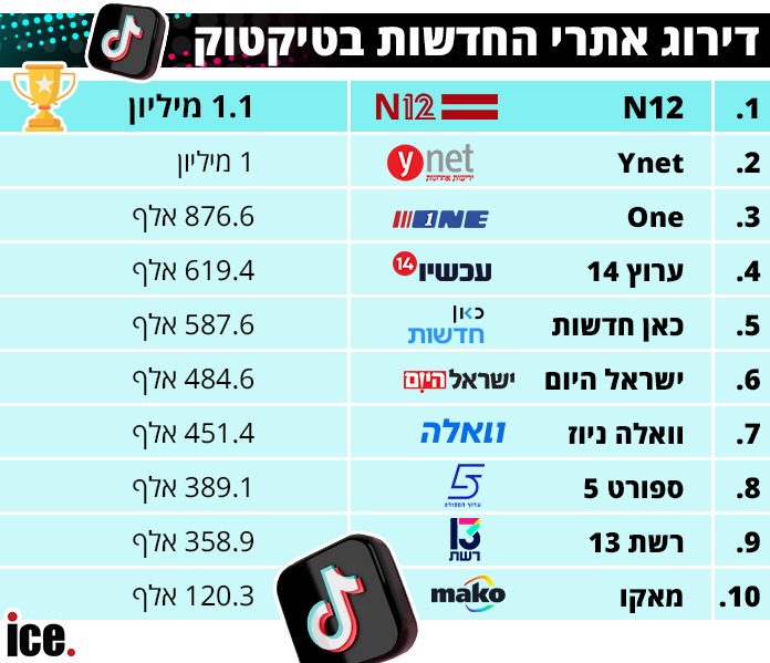 חדשות 12 או ynet? דירוג אתרי החדשות בטיקטוק - וזה המנצח