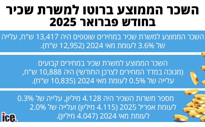 שווה לעשות הסבת מקצוע? הלשכה המרכזית לסטטיסטיקה פרסמה אמש (שני) כי בחודש מאי 2025,. השכר הממוצע למשרת שכיר במחירים שוטפים היה 13,417 שקל, כאשר מדובר בעלייה של 3.6% לעומת מאי 2024 אז הסכום היה 12,952 שקל בלבד. אבל כמה הרוויחו אנשי ההייטק ובכמה הם גבוהים מהעובד הממוצע בתלוש השכר.