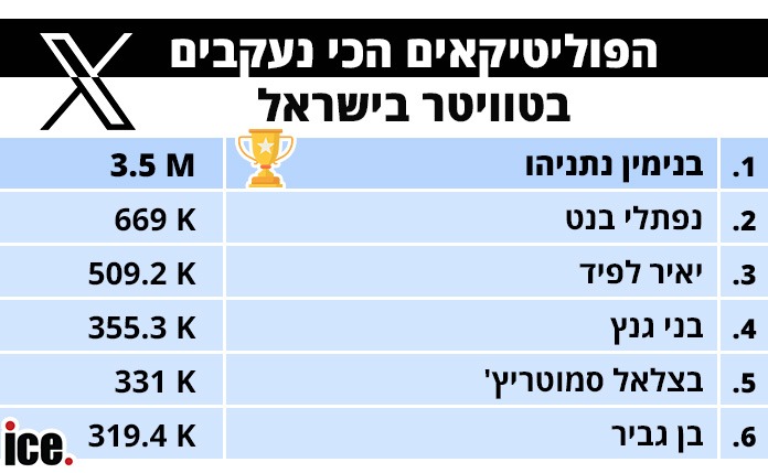 יש לא מעט פוליטיקאים שמעוררים הדים ברשתות החברתיות, אך בפסגה ניצב לו אחד שעולה על כולם. מי מפתיע ומי הצייצן המצטיין? | דירוג הפוליטיקאים המלא ב-X