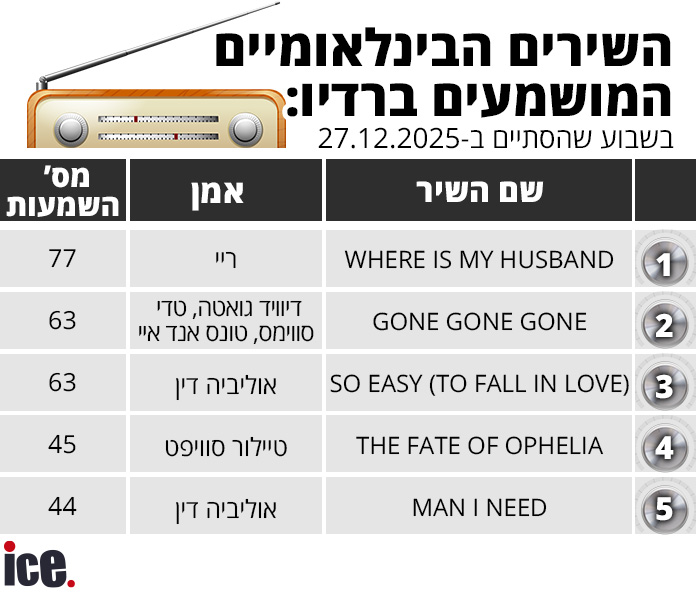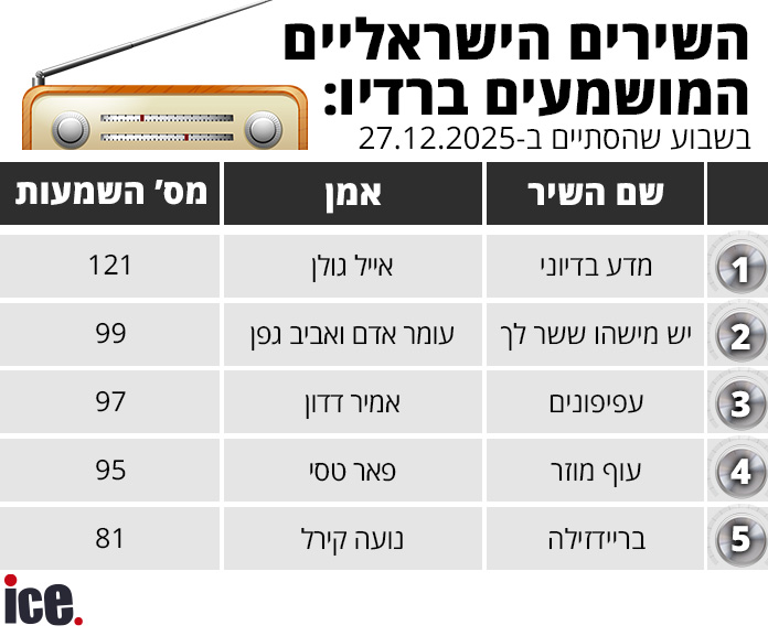 הזמרים והשירים המושמעים השבוע: הזמר עומר אדם מוביל אבל רק במעט, כשאייל גולן נותן לו פייט. טיילור סוויפט יורדת במדדים - כל מה ששמעתם השבוע