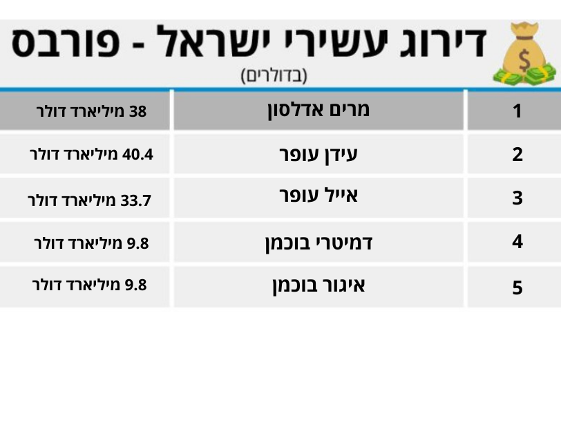 דירוג עשירי ישראל של מגזין "פורבס" מציג מהפך בתוך משפחת עופר, האח עידן עם 40.4 מיליארד דולר ומנגד אחיו, אייל הפסיד השבוע כ-194 מיליון דולר | הדירוג המלא כאן