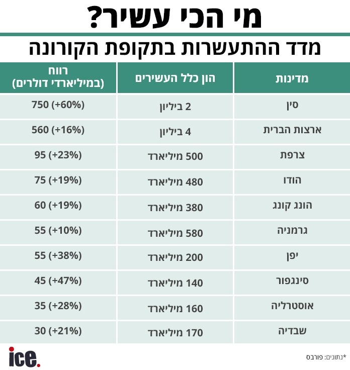 עשירי העולם רק הרוויחו מהקורונה: הונם זינק במצטבר בכ-1.9 מיליארד דולר