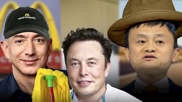 הנה לדוגמה ג'ף בזוס, מי שעד לאחרונה היה האיש העשיר בעולם, שכנער עבד בכלל כטבח והתעסק בטיגונים במקדונלד'ס, האיש לו איבד את פסגת העושר אילון מאסק, בכלל שימש מנקה חדרי דוודים לפני שפרץ לתודעה עם טסלה וספייס X.