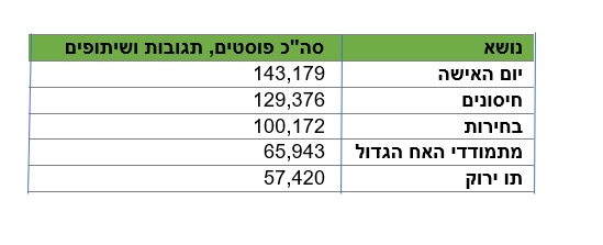 *הנתונים נאספו ונותחו על ידי חברת סקופר המתמחה בניטור מדיה ומחקרי שיח ברשת